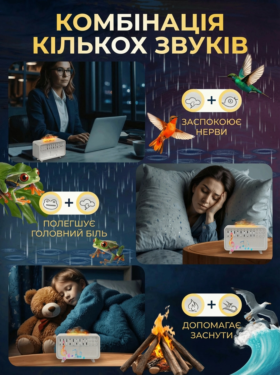 Білий шум та звуки природи допомагають розслабитися та швидко заснути.